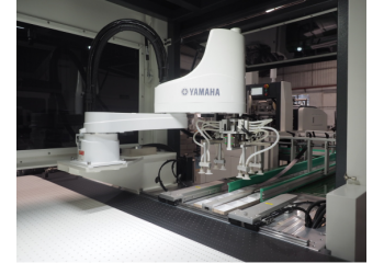 • 天地盒機視覺對位機械定位貼合系統由以下硬件組成:機器人(YAMAHA)輸送帶視覺定位系統高清攝像頭照明系統面紙檢測傳感器(用于檢測面紙輸送速度)全自動天地盒機視覺定位部分內容展示面紙通過自動飛達機構上膠輸送到皮帶上,皮帶輸送經過面紙檢測傳感器最后停在拍照位。機械手收到允許取料信號后到取料位抓取紙殼。YAMAHA