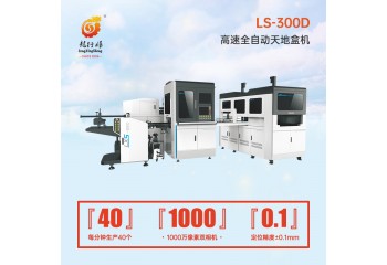 • LS-300D 高速全自動天地盒機這臺設備能適用于多種天地盒的大量生產,例如鞋盒、手機盒、首飾和、化妝品盒、手表盒、斜邊盒等精美禮盒,生產速度高達每分鐘40個禮盒。整機采用觸摸屏人機控制系統、圖像定位系統,全線伺服控制數字化快速調節,進口雙高清1000萬像素超廣角攝像頭,智能無誤差定位高精度機械手,成型送盒全自動