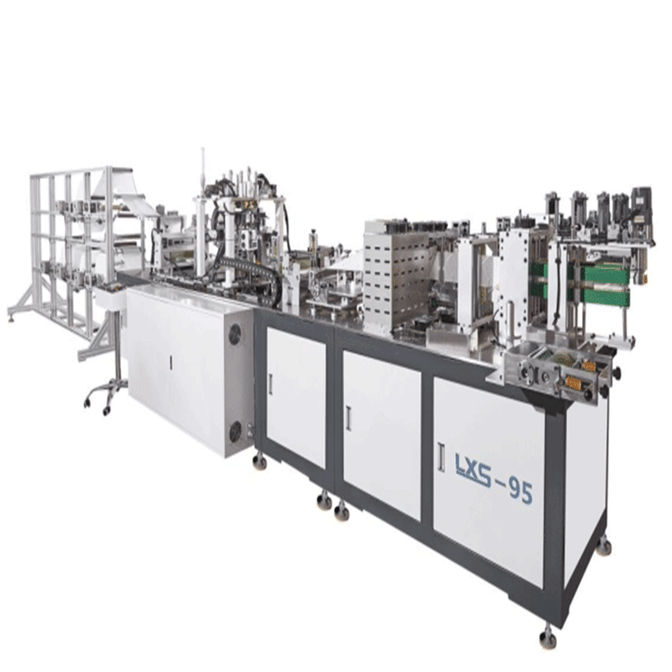 本設備的工藝流程適用于KN95口罩的生產. 常見的KN95或N95口罩主要由4-5層無紡布組成,內層為普通無紡布,外層為防水無紡布,主要用于隔離人的唾液飛沫;中間過濾層(1或2層)為經處理的聚丙烯熔噴無紡布,另一層織物為熱風棉。