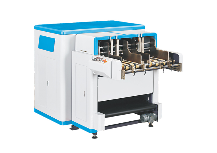 本機是加工精裝盒,天地盒的理想自動化設備,通過人工在流水線上將內盒和面紙定位好,再將定位好的紙盒放進機器木模上,機器自動運行,糊盒、折邊壓泡一次性完成。每分鐘可生產精裝盒多達30個,大大提高了精裝盒的生產效益,節省了生產成本。因每個動作都是機械式完成,使產品標準化生產,大大提高了產品的質量。